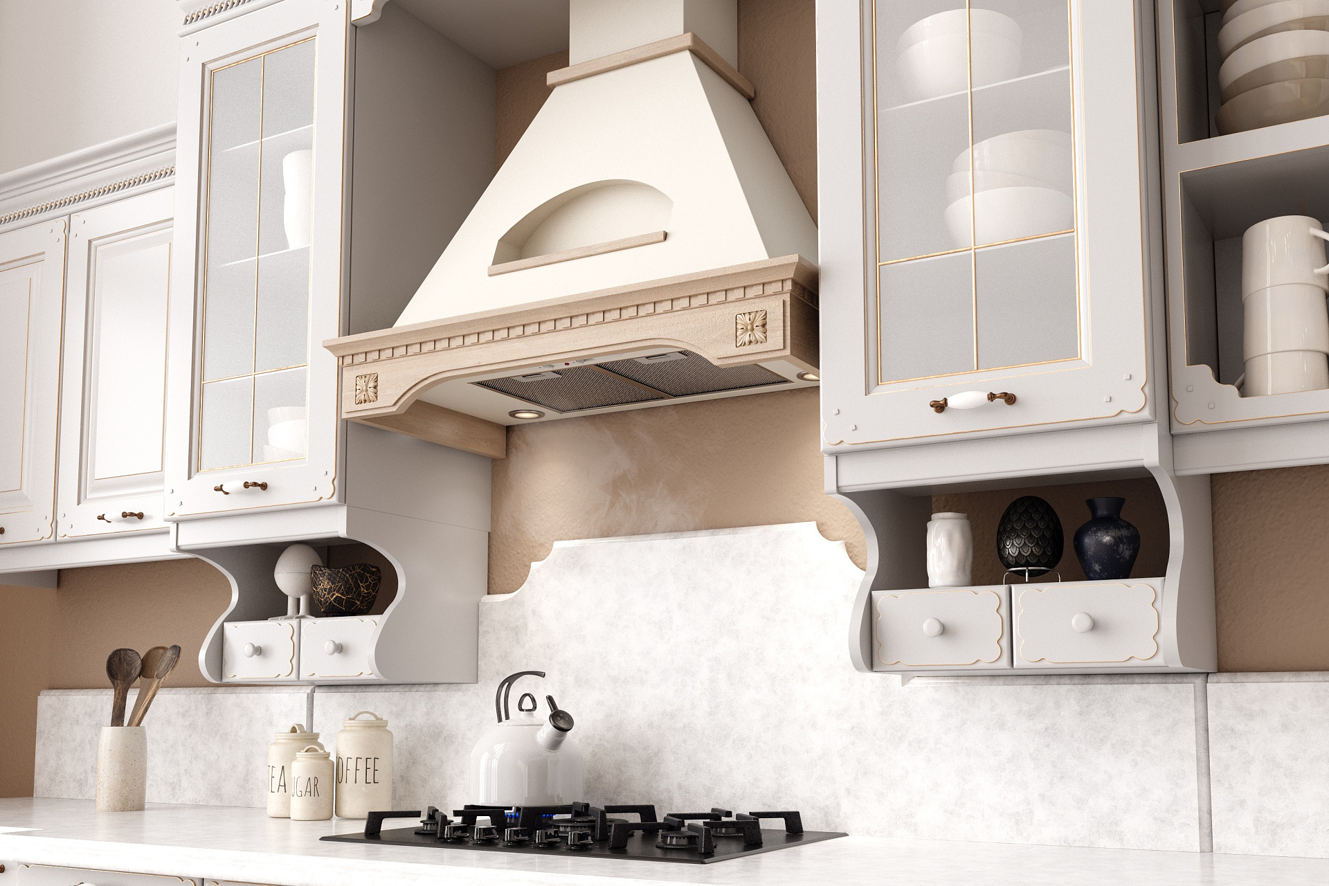 Для классических вытяжек используются материалы дуба или бука - древесина, которая устойчива к воздействию влаги, эластична и отличается высокими декоративными свойствами.